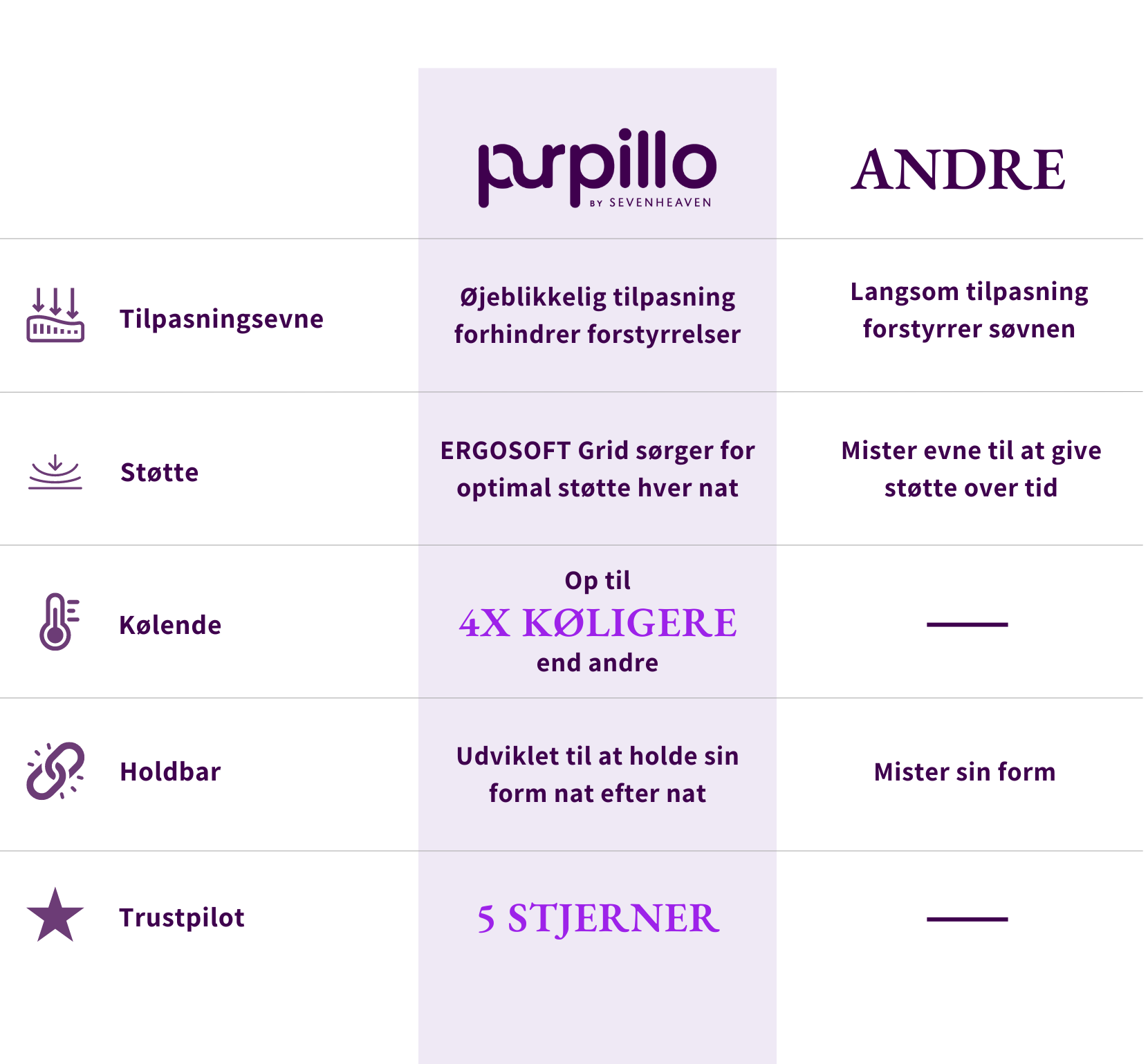 "Efter mange år med dårlig søvn har jeg endelig fundet den perfekte hovedpude. Tusind tak Purpillo!"